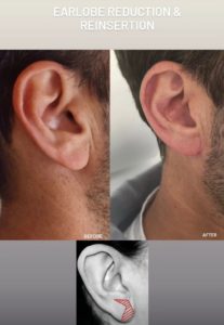 La cicatrice est marquée derrière l’oreille. Ensuite, le cartilage est remodelé : on corrige un excédent de conque en le révoquant, on corrige le défaut de plicature de l’anthélix en rappant le cartilage afin de le rendre modelage et on réalise des points de suture dans le cartilage pour recréer la plicature de l’anthélix et quand il le faut, on ferme l’angle postérieure entre la conque et le crâne en réalisant des points de suture postérieur.