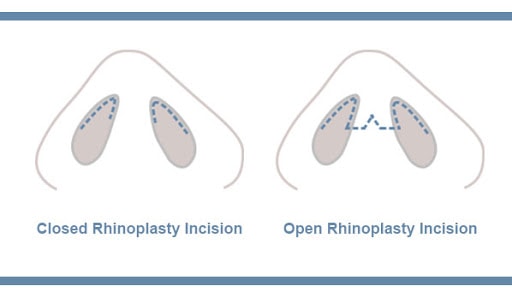 An open or closed rhinoplasty can be performed depending on the case. Dr. Lucas favors the open approach because it offers better visibility and the scar on the columella is almost invisible at 6 months. However, for a minimal bump or minimal work on the tip, he most often opts for a closed approach.